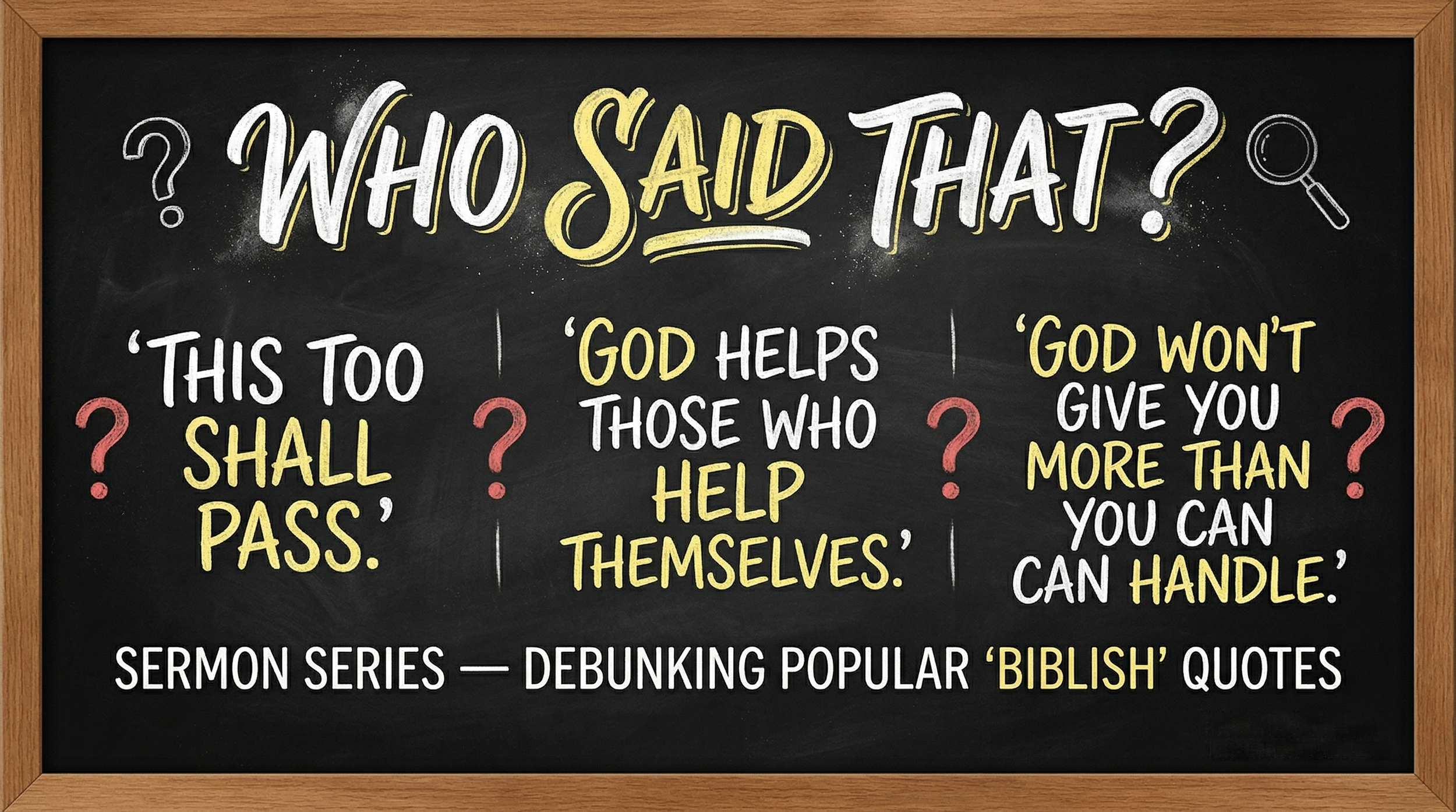 They sound holy. They look like Scripture. We call them "Biblish." But here’s the kicker: None of those phrases are actually in the Bible. Starting this Sunday, join us at redericktown UMC for our new series: "WHO SAID THAT?" We’re taking an eraser to the myths we’ve grown up with and doing some "Theological Fact-Checking." Whether you’ve read the Bible a hundred times or you’ve never even opened the cover, this series is for you. We aren't just looking to see who said what, we’re looking for the life-changing truth that actually holds weight when the "Biblish" phrases fail us.
